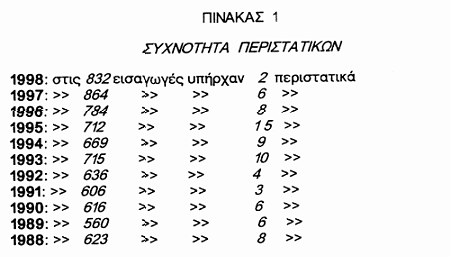 κλινική, Α.Π.Θ. στην δεκαετία 1988 έως 1998, τα περιστατικά που παρουσίαζαν