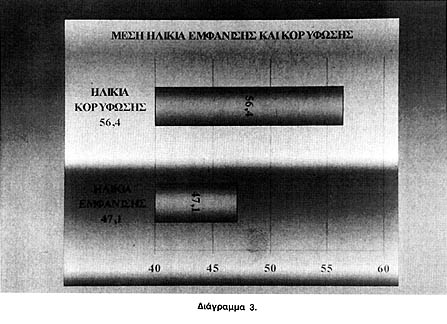 κατανομή, αναλογία ανδρών-γυναικών, μέση ηλικία εμφάνισης και κορύφωσης των