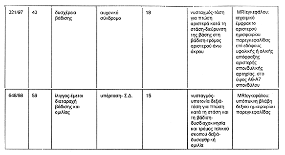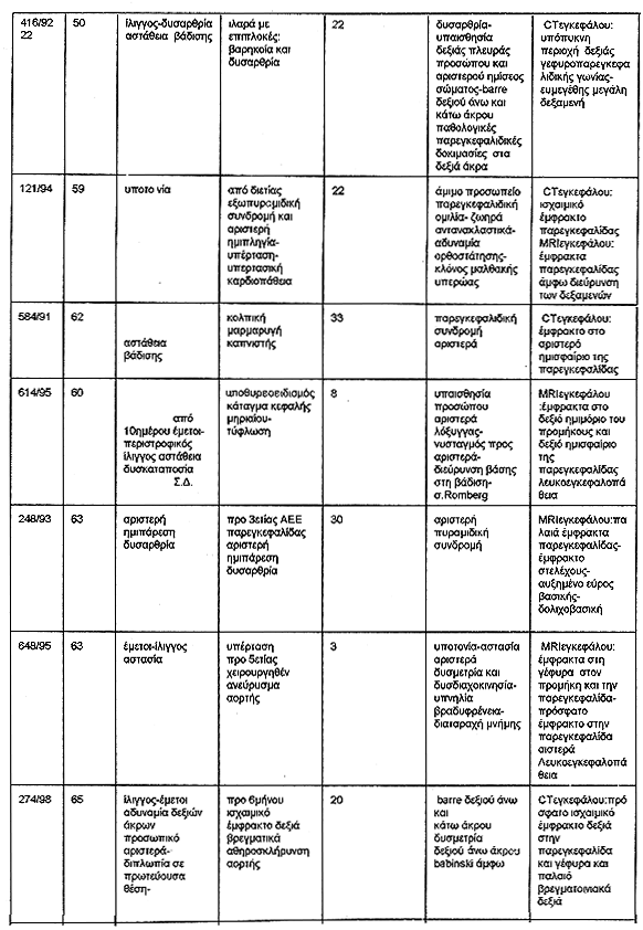 επεισοδίων, διεχωρήσθησαν 12 περιπτώσεις ισχαιμικών επεισοδίων της παρεγκεφαλίδος,