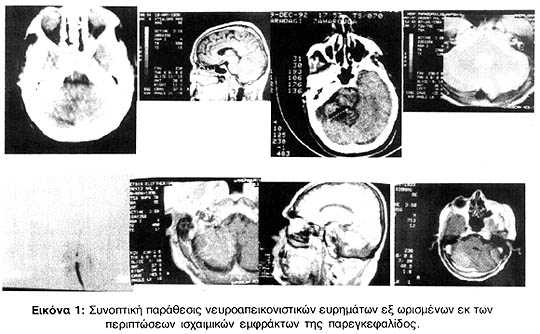 Τα νευροακτινολογικά ευρήματα των περισσοτέρων παρατίθενται συγκεντρωτικώς εις την εικόνα 1.