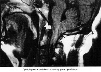 Τα ανωτέρω ευρήματα συνηγορούν υπέρ δυσπλασίας Arnold-Chiari τύπου Ι.