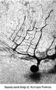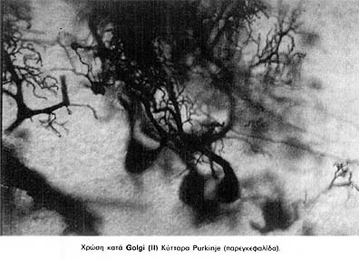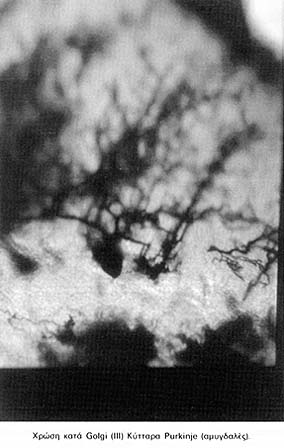 Εντυπωσιακή ήταν η μορφολογία των κυττάρων δια της μεθόδου κατά Golgi. Τα κύτταρα παρουσίαζαν βραχύ και λίαν πεπαχυμένο πρωτογενή κορυφαίο δενδρίτη ο οποίος έδινε ταχέως δύο ημικυκλικώς φερομένους δευτερογενείς κλάδους εκ των οποίων αναδύοντο βαραχείς τριγωνικές και ατρακτοειδείς άκανθες που ο αριθμός τους ήταν εμφανώς μικρότερος των υγιών μαρτύρων.