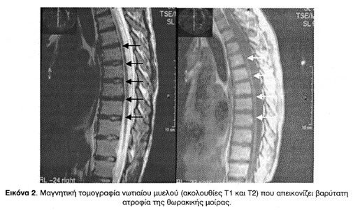 και σημαντικού βαθμού ατροφία της θωρακικής μοίρας του νωτιαίου μυελού