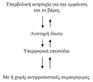 Πολλές φορές των υπερφαγικών επεισοδίων μπορεί να προηγούνται περίοδοι δίαιτας οπότε να ισχύει το σχήμα (Fairburn & Cooper, 1999):