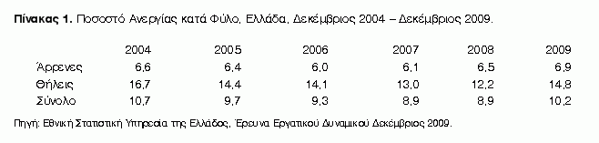 Εθνική Στατιστική Υπηρεσία της Ελλάδος. 2010. Έρευνα Εργατικού Δυναμικού, Δ Τρίμηνο 2009. Αθήνα: Εθνική Στατιστική Υπηρεσία της Ελλάδος.